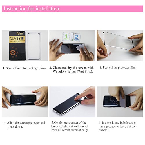 -. Feature : Easy to apply, do not need any skills even you have never apply a screen protector before. / New Edge Design and Case Friendly: Narrow on both sides design fits for most of phone cases in the market,and not influence most cases installation.[Not Full Coverage] / Featuring maximum protection from scratches, scrapes, and bumps.99.99% High-definition clear hydrophobic and oleophobic screen coating protects against sweat and oil residue from fingerP.R.Ints. / Curved edge, Precise laser cut tempered glass,perfectly matches the contours of your device,without any worry about it escapes from your sreen and the edge peel up. / [12-Month Warranty]WORKS FOR Galaxy S9 (5.8 Inch Screen),not for S9+.Online video installation instruction: Go to YouTube Tutorial by searching Keywords: Ailun Galaxy S9 Screen Protector Installation Instruction.