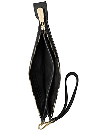 - Interior features lining, 1 slip pocket and 6 card slots 6"L wristlet strap