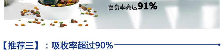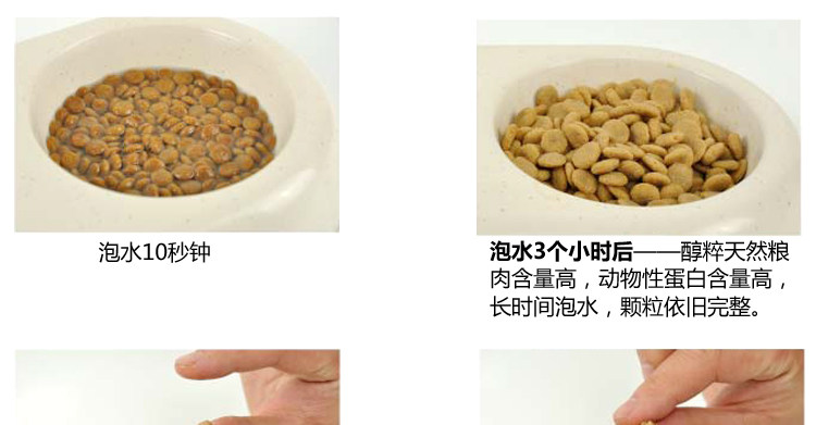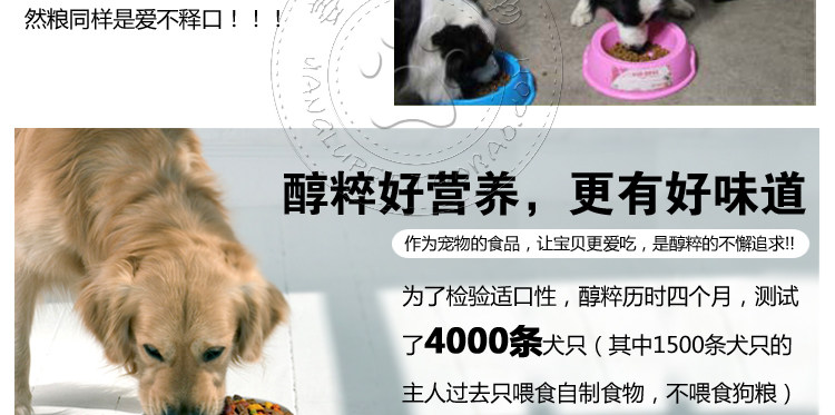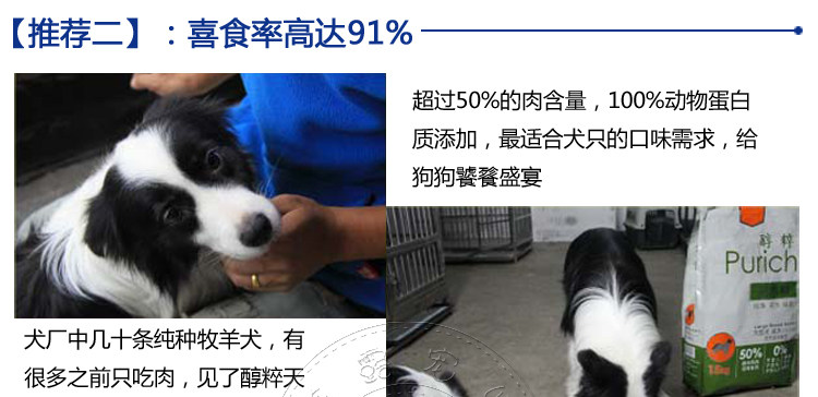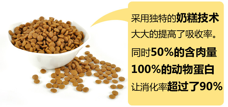| Strictly selected natural pollution-free raw materials, more than 50% fresh chicken and fish oil, does not contain any animal by-products. With the growing demand of dogs, more than 90% of the rate of digestion and absorption, solve the dog poo smelly, easy to diarrhea, hair easy to fall offand etc.. The whole production process quality control, to ensure productsafety. |