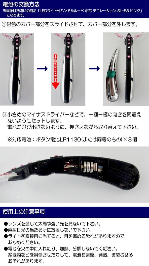 | 仕様 | ボタン電池LR1130(または同等のもの)×3個使用 レンズ倍率:約2.5倍 LEDライト付 |