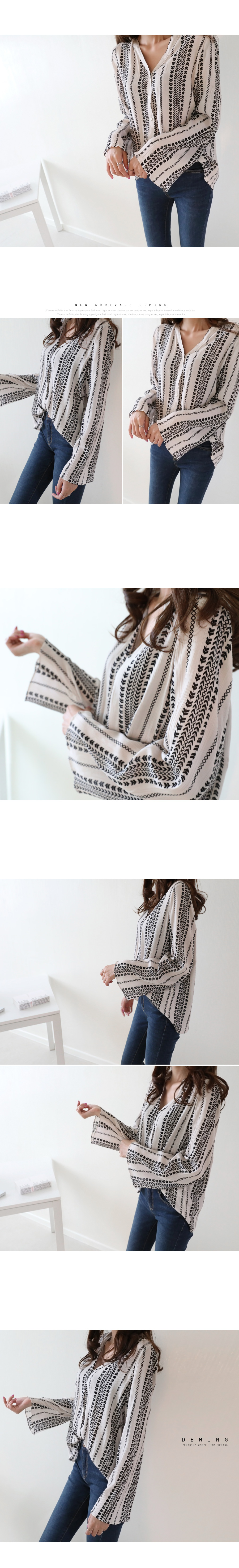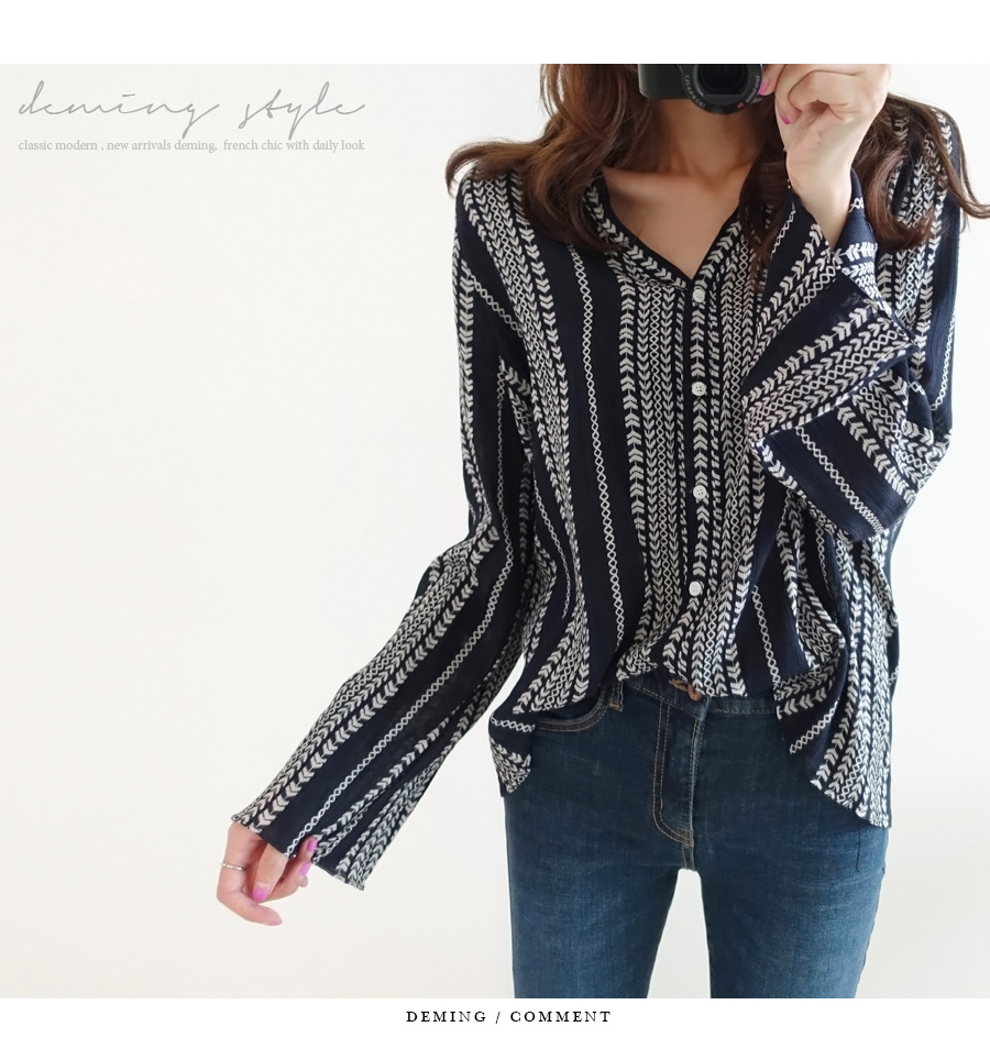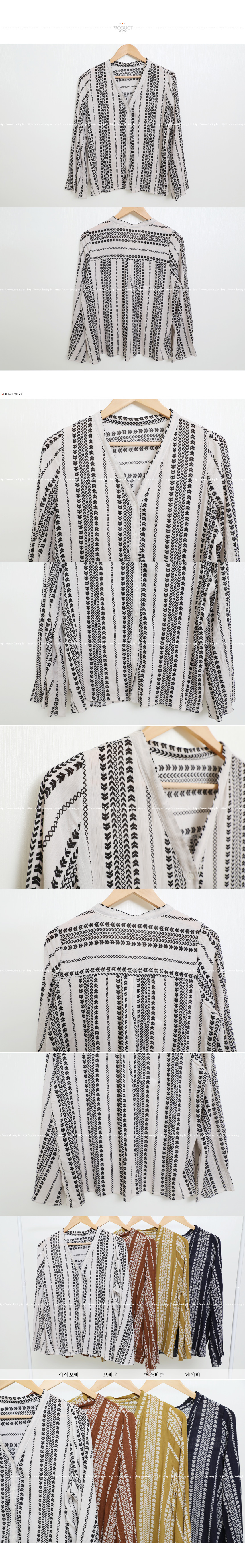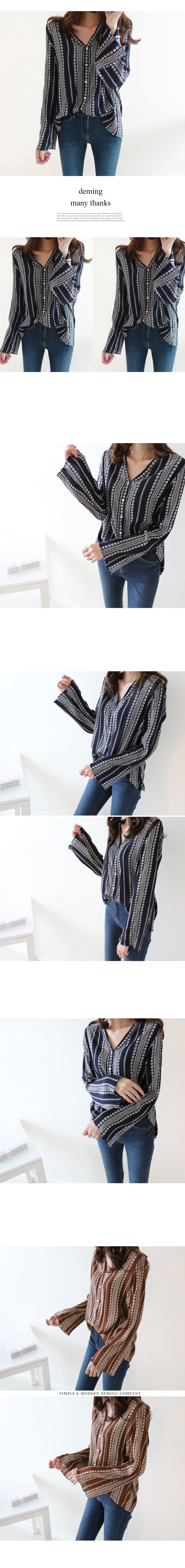 Duming Benny Ethnic Blouse, 3 Color Fall V Neck Women Pattern