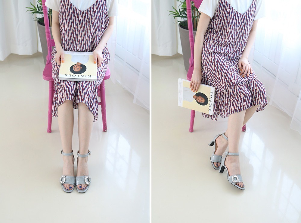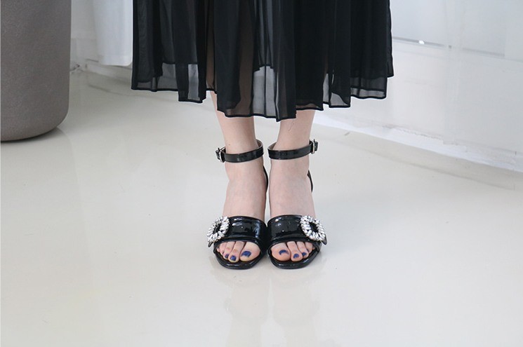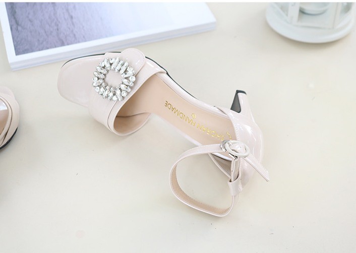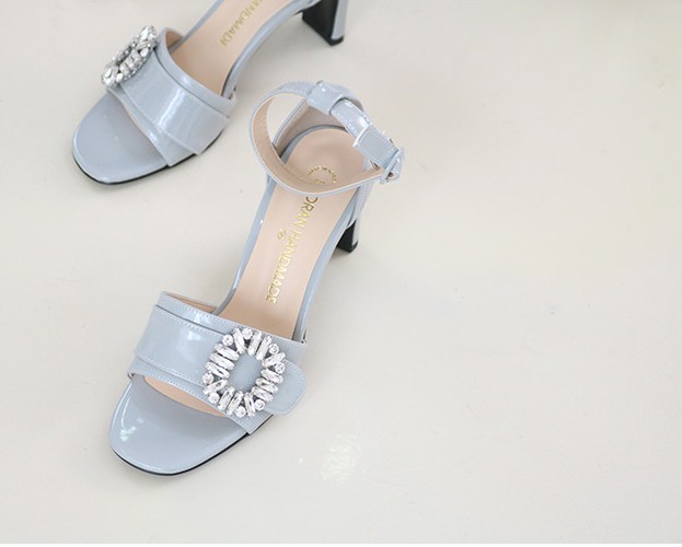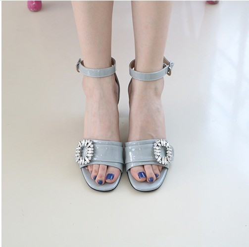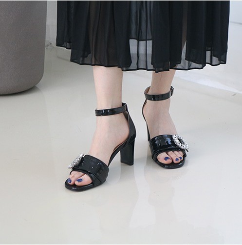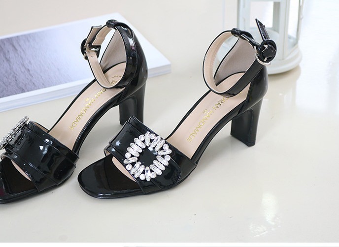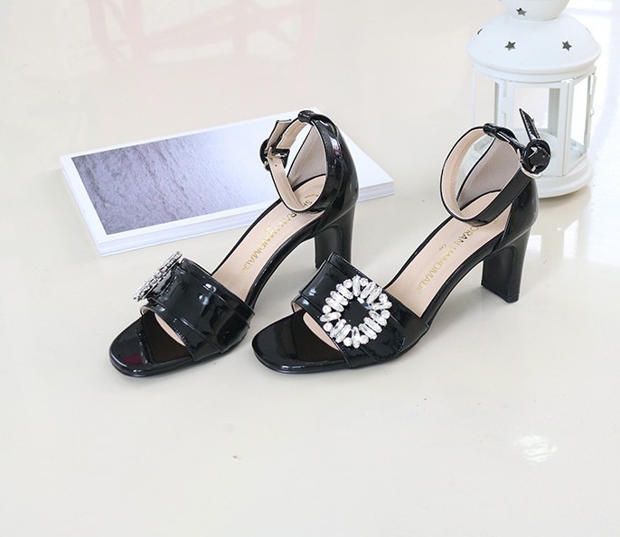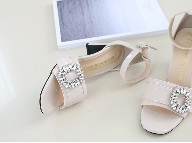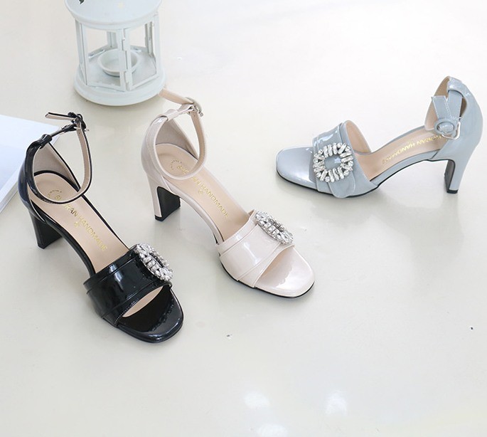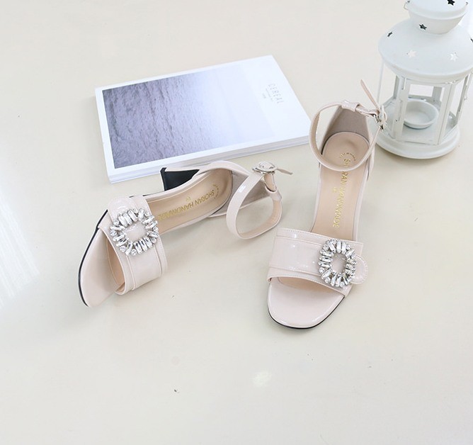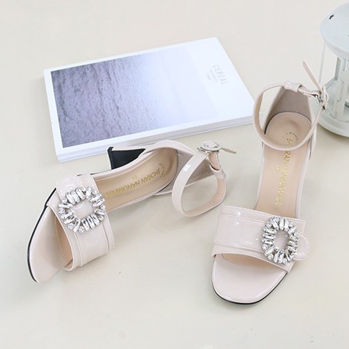 商品名:サンダル レディース 太ヒール チャンキーヒール アンクルストラップ ビジュー 2018 春 ファッション 靴 婦人靴