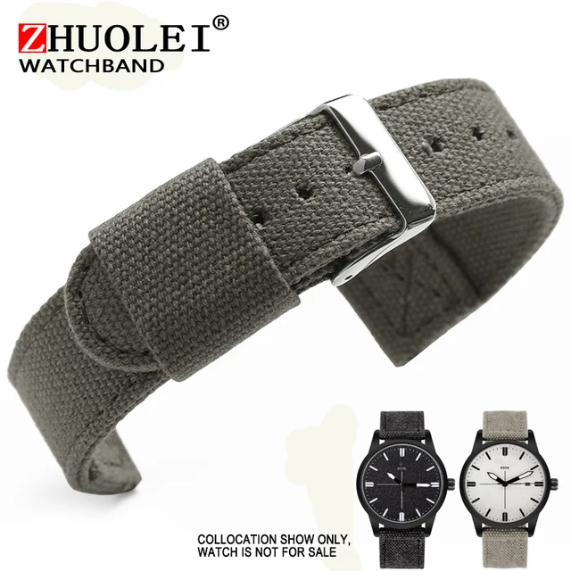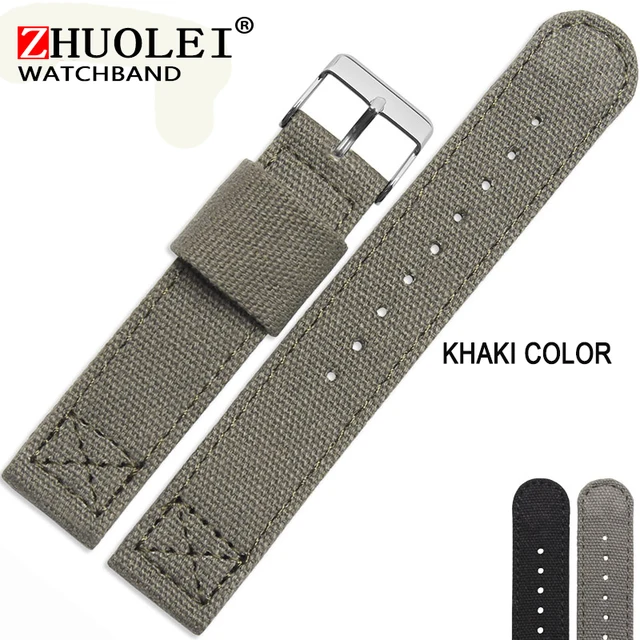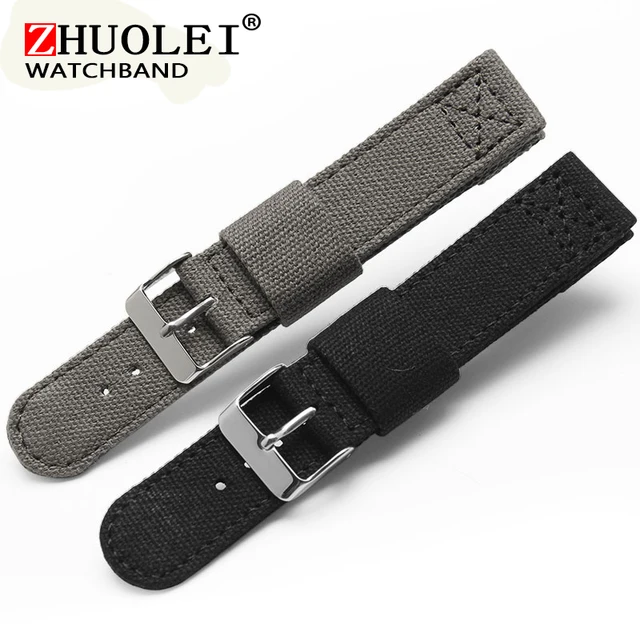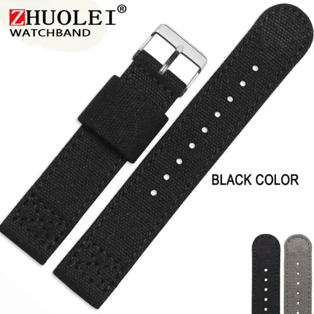 | [해외]18/20/22 미리메터 교체 SW 육군/팀버랜드 캔버스 시계 스트랩 블랙/그레이 시계 팔찌 스테인레스 스틸 버클 |
