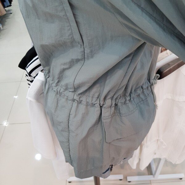 안쪽까지 비치는 원단으로 한여름까지 편안하게 입으실수 있으며 허리에 스트링들어가있어 라인감도 만질수 있는 인기 점퍼