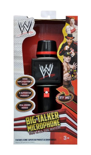 -. Binding : Toy -. Brand : WWE -. EAN : 0819798012085 -. Feature : The WWE Big Talker Microphone lets you take center ring and become the superstar. / This microphone features voice amplification for when you take center stage in the ring. / The microphone boasts 9 iconic wrestler phrases. Such AS "You can't see me", "You want some, come get some", and "The Champ is here" plus many more! / Have arena sound effects as you make your entrace with the WWE Big Talker Microphone! / Cut your favorite promo or call the match - it's your choice! / Arena and voice effects - You call the match! / 9 iconic Superstar phrases. / Become the next WWE Superstar! -. IsAdultProduct : 0 -. ItemPartNumber : 44400 -. Label : Wicked Cool Toys (Domestic) -. LegalDisclaimer : CHOKING HAZARD - Small parts. Not for children under 3 yrs. -. Manufacturer : Wicked Cool Toys (Domestic) -. Model : 44402 -. MPN : 44400 -. PackageQuantity : 1 -. PartNumber : 44400 -. ProductGroup : Toy -. ProductTypeName : TOYS_AND_GAMES -. Publisher : Wicked Cool Toys (Domestic) -. Studio : Wicked Cool Toys (Domestic) -. Title : WWE Big Talker Electronic Microphone -. UPC : 683498547587 -. Warranty : No Warranty