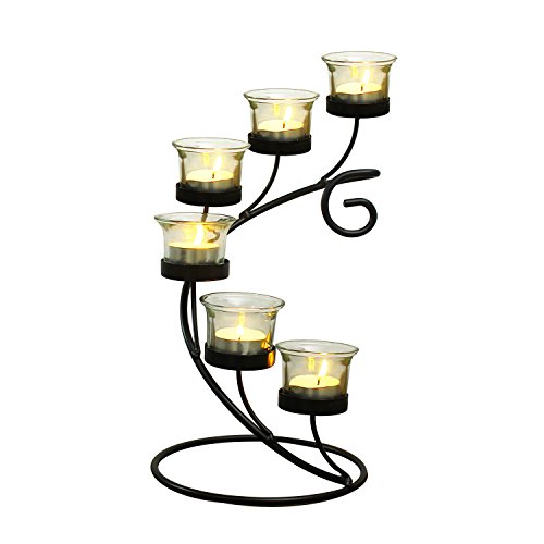 Joveco Accent Candle Holder With Clear Glass, Holds 6 Pillar Candles