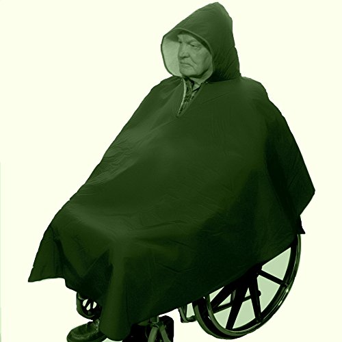 -. Brand : Benefit Wear -. Color : sage green -. Feature : Water repellent outer shell. Fully sherpa lined for extra warmth. / Unisex-suitable for teens, men or women. / Easy to put on by simply slipping over the head. Zipper closure with beige piping around opening / Full length front assures warmth and protection from rain from head to toe. / Shorter truncated back for comfort and prevents the poncho from becoming entangled with the wheels of the wheelchair. -. IsAdultProduct : 0 -. Label : BENEFIT WEAR -. Manufacturer : BENEFIT WEAR -. Model : ACS9661-Hunter -. MPN : ACS9661-Hunter -. PackageQuantity : 1 -. PartNumber : ACS9661-Hunter -. ProductGroup : Health and Beauty -. ProductTypeName : PERSONAL_CARE_APPLIANCE -. Publisher : BENEFIT WEAR -. Studio : BENEFIT WEAR -. Title : Winter Hooded Poncho Cape for Wheelchair Users-Hunter Green