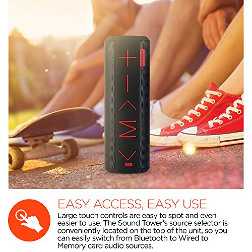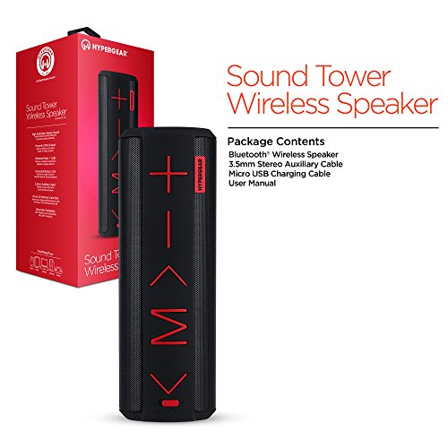 Don't be fooled by the ultra-slim style, the Sound Tower delivers surprisingly rich sound and deep bass, wirelessly! Beautifully curved into a smooth tube, the speaker is grip-friendly and easily slips into a backpack or purse. Bluetooth 4.1 technology ensures easy and reliable pairing, so you can enjoy up to 8 hours of hands-free music and calls anytime, anywhere. You can also connect with non-Bluetooth devices via the aux-in port or play audio files directly from a Micro SD memory card. Indoors or outdoors, wire-free or wireless, you deserve sound on your terms. Bold Look. Big Sound. Features HD Stereo Sound Powerful 10W Output Precision Bass Hands-free Speakerphone Function Extended Battery Life Aux-in & Micro SD Memory Card compatible Ultra-Portable Bold Color Options Limited One Year Warranty Specifications Speaker Output: 2 x 5W Bluetooth Version: 4.1 Frequency Range 2.4 - 2.48GHz Battery Capacity: 1200mAh Play Time: Up to 8 Hours*Feature
