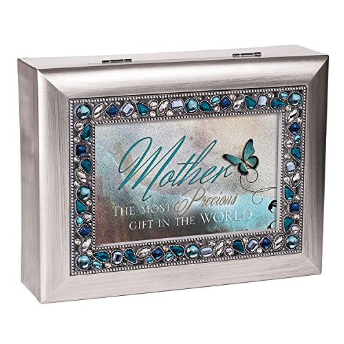 "Mother the Most Precious Gift in the World" Brushed Silver Finish Decorative Jewel Lid Musical Music Jewelry Box - Plays Wind Beneath My Wings