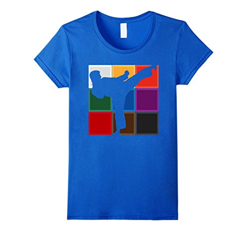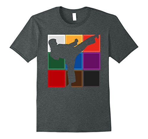 Our 'Karate Belt Blocks' t shirt is designed for anyone, especially those who love belt colors! All shirts are printed and designed specifically for karate students or instructors and people looking for a karate training tee shirt or people who like karate belt. This belt colors shirt is not available in retail stores. Available in sizes for all - men, women & kids in five different colors. This will make a great belt colors gift for men, women, or children and allow them to show off their shirt displaying a karate training theme. All 'Karate T-Shirts and Martial Arts' are sized to fit so order one size larger for a more comfortable feel. Pick a karate t shirt variation and order now!Feature