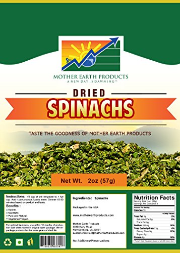 Mother Earth Products Dehydrated Spinach 2 Cup Mylar