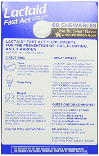 -. Title : Lactaid Fast Act Lactase Enzyme Supplement Chewable Tablet, Vanilla Twist, 60 Count