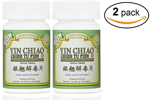 Mayway's Plum Flower Yin Chiao Chieh Tu Extract Tablets available in two bottles each containing 100 tablets. Also called Yin Chiao Plus, Yin Qiao Jie Du Wan, Yin Chiao Chieh Du Wan, or Yin Chiao Chieh Tu Pien, is one of the most well known formulas in the Chinese herbal system. Yin Chiao is highly-regarded for its ability to nourish and strengthen the body. Chinese Medicine suggests taking immediately after the onset of common cold or flu symptoms. Chinese herbalists believe that cold/flu germs remain on the surface for a short period of time after entering the body. It is during this critical time that Yin Chiao can be most effective in reducing body stress.Feature