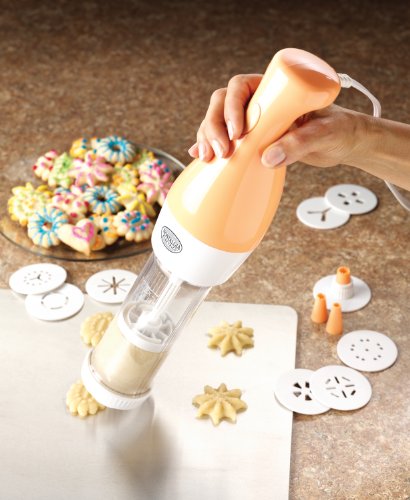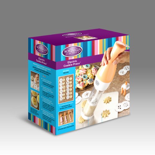 Studio : Emgee Publisher : Emgee Binding : Kitchen Product Description The Nostalgia Electrics Electric Cookie Press helps you make beautifully designed and decorated cookies, just like a pro! Also great for filling pasta shells, hardboiled eggs or decorating cakes or cupcakes 0