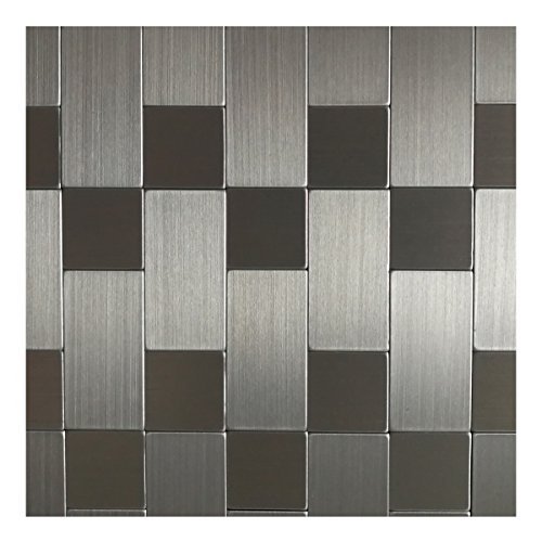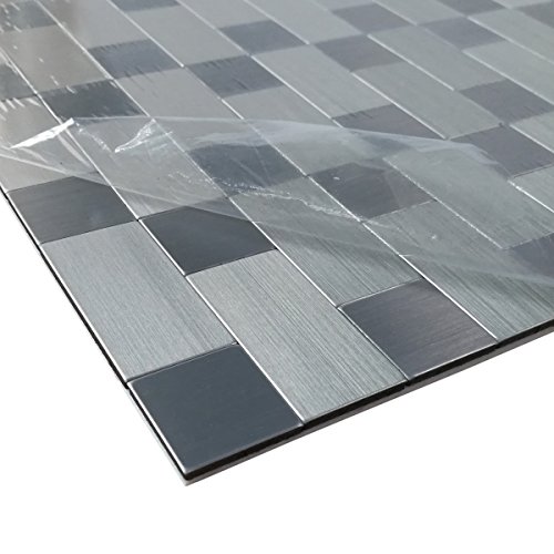 Art3d Self-adhesive Metal Backsplash Peel and Stick Tile For Kitchen, 12" x 12" Silver Aluminium Surface
