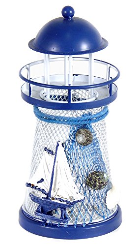 - Light Blue Lighthouse with Crab Nautical Decor - Material: iron; Size: 6'' H