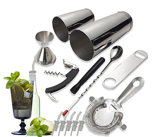 -. Brand : Tiger Chef -. Feature : - Setting Up Your Own Little Bar? Make sure that you get these entertaining essentials. / - Shake, stir, and serve! Includes everything you need to set up your own little bar. / - High Quality Stainless Steel Set - Includes (1) 28 oz. Shaker, (1) 16 oz. Shaker (used to cap the 28 oz.), (1) 11 inch Bar Spoon, (1) Stainless Steel 4-Prong Bar Strainer, (1) Jigger, (1) Corkscrew, (6) Black Plastic Bottle Pourers, (1) 7 inch Flat Bottle Opener and (1) Netted Head Mudler. / - Great for Professionals or Home Bar Enthusiasts - Enjoy being the cocktail superstar with this complete bar mixing set. / - The Only Bar Tool Set With 100% Satisfaction Guarantee - Buy with confidence because we offer a Money Back Guarantee if you do not love this product! -. Label : Tiger Chef -. Manufacturer : Tiger Chef -. ProductGroup : Kitchen -. ProductTypeName : KITCHEN -. Publisher : Tiger Chef -. Studio : Tiger Chef -. Title : Tiger Chef 14-piece Stainless Steel Bar Set and Cocktail Making Set Includes Bar Tools and Accessories
