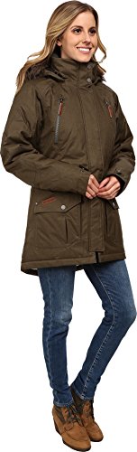 - Membrane comprises 65% of lining for high breathability. Leather zipper pulls and logo patches. Attached drawstring hood with removable, faux-raccoon fur trim. Separate stand collar. Snap flap over full zip. Inner drawstring cinches the waist. Snap-tab over inner ribbed cuffs. Zip chest pockets with snap-flap at left. Patch hand pockets with snap-flap and zip entries. Droptail hem with drawcord. Shell and Lining: 100% polyester;