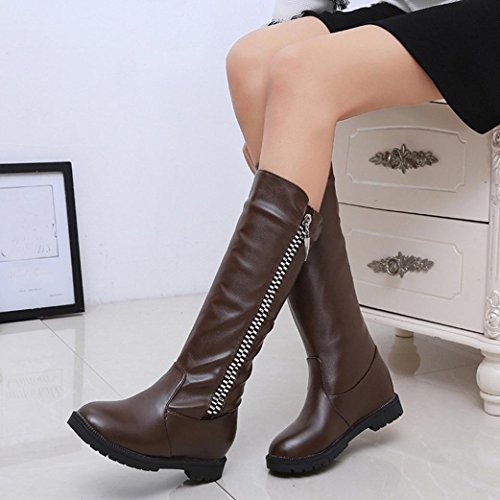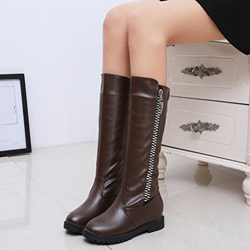 Happy Shopping Start From Here --- Efaster Features: ♪ ♪1.High quality PU leather material,comfortable and soft,Reduces stress on joints,strengthens and tones,improves posture ♪2. Over The Knee shoes, Easy to wear Take off! ♪3.Personalized and zipper high heels Shoes,We have more sizes Colour design for You and yours family or lover Or friends select ♪4. Slip-on design,Cushioned selectinsole,fashion and personality ♪5.Suitable for outdoor walking,Entertainment,leisure,party,work,Wedding and other occasions,color sturdy and stylish. ♪Product information: ♪Gender: Women,Girl ♪Material:PU leather ♪Sole Material:Rubber ♪Style: Fashion,Small fresh,Feminine charm ♪Item Type: Boots ♪Heel Shape:Flat ♪Toe Shape: Round head ♪Shoes Heel High: 2cm 3cm(Increased ) ♪Waterproof Platform: No ♪Appropriate Season: Spring,autumn,winter ♪Occasion: IndoorOutdoor,Fashion,Leisure ♪Package: 1 Pair Women Shoes(not including shoebox) ♪Women Size Chart(Unit:cm/inch) ♪US:4.5 --- CN:35--- Foot Length:22.5cm/8.9" ♪US:5 --- CN:36--- Foot Length:23cm/9.1" ♪US:5.5 --- CN:37--- Foot Length:23.5cm/9.3" ♪US:6 --- CN:38--- Foot Length:24cm/9.4" ♪US:6.5 --- CN:39--- Foot Length:24.5cm/9.6" ♪US:7 --- CN:40--- Foot Length:25cm/9.8" 0