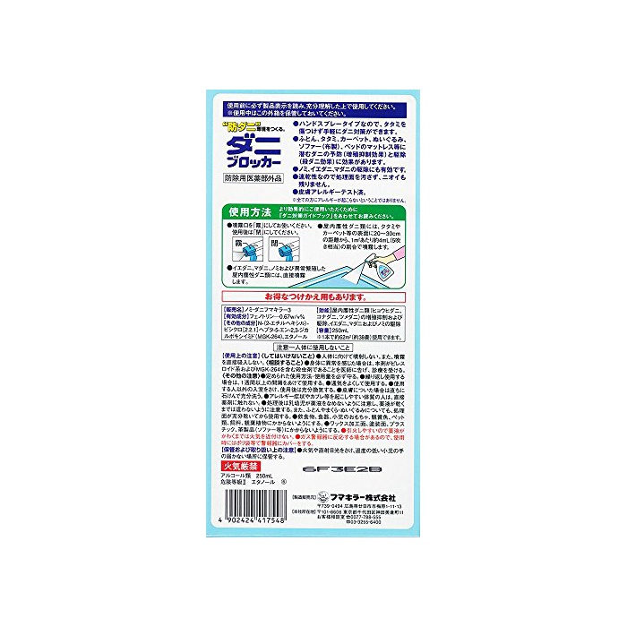 원본상품명: フマキラ? ダニ用スプレ? ダニブロッカ? 本? 250ml