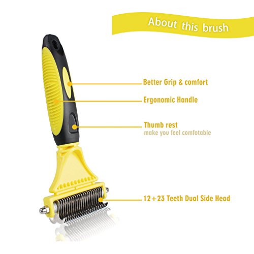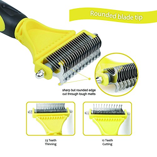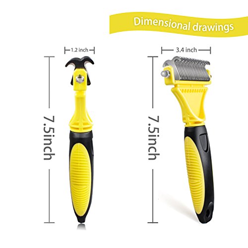 Dual sided 12+23 teeth are designed to break mat.The comb give you the best result of de-matting for any pet with long hair. Even the longest and densest coats of dogs, cats,rabbits,long haired breed pets.