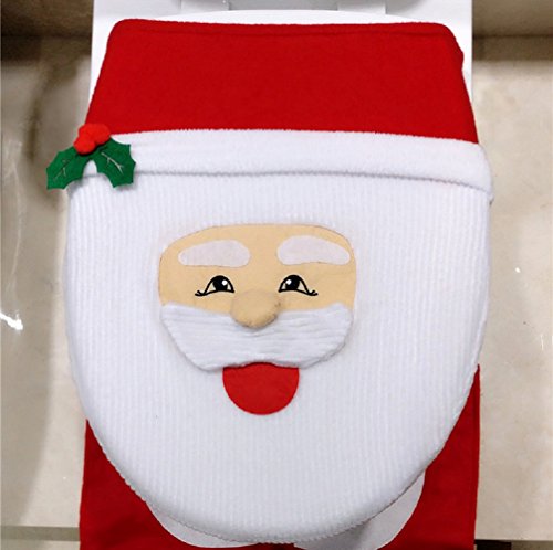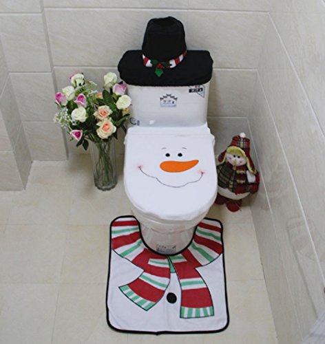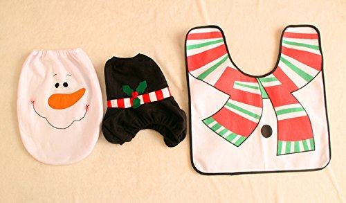 -. Brand : Cozy Products -. Feature : Material: flannelette / Color: White, red, black / Soft fabric with high quality and can be washed / 1 set=3pcs=1pc Toilet Seat Cover+1pc Rug+1pcTank Cover with Tissue Box Cover / The toilet rug has an anti-slippery rubber back -. ProductGroup : Home -. ProductTypeName : HOME_BED_AND_BATH -. Title : 3 pcs Happy Santa and Snowman Toilet Seat Rug Tank Tissue Cover Set for Bathroom Christmas Decor