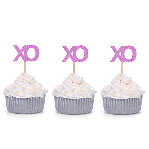 Set of 24 Red Glitter XO Kiss Hug Cupcake Toppers Wedding Party Decors - by Giuffi