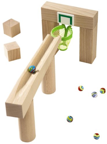This HABA Basketball Hoop Track is just what your marble track has been missing! Great for developing hand-eye coordination and encouraging the imagination, kids love building and playing with interactive marble tracks. Made of beech wood with HABA's renowned German-made quality, the HABA Basketball Hoop Track will make a perfect addition to your existing track. Set includes 1 gate with basketball hoop, 1 long ramp, 2 supporting columns, 2 supporting cubes, and 6 marbles. For ages 3 and up.