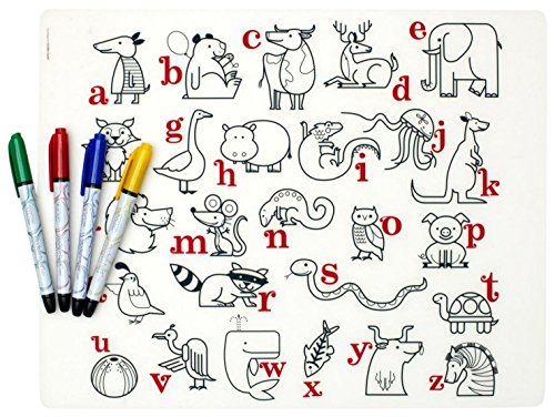 - Features a playful, silk-screened design by an independent artist that a child can color with 4 included dry-erase markers (red, yellow, green, blue)