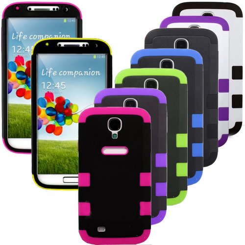 - Feature : IMPORTANT FEATURES AND DESIGN: This case comes with a flexible easy grip silicone gel that prevents your Galaxy S4 phone from slipping out of your hands yet will not latch onto the material of your pocket. This means you can slide the phones in and out of your pocket with ease and keep your phone from slipping out of your hands. Keep your Galaxy S4 usable and protected in style with this duo-shield hybrid Case Constructed from smooth, treated silicone that resists dirt and stains. / WARRANTY AND PACKAGING: This product will come sealed in the manufacturer authorized packaging and will come with a true lifetime warranty that is good for one free replacement during the course of the original buyers' life. The manufacturer warranty is guaranteed if your purchase has any manufacturer defects that occur during your ownership of this product. / COLOR: This case comes in a deep high quality color that will last the life of your Galaxy S4 smartphone because the color is fused with the hard rubberized material itself and it is than glossed over. This guarantees that fading does not occur. / MATERIALS AND DESIGN: The case has a hard external fitter 2 piece layer with a silicone flexible gel interior layer for double the protection. This case protects the Galaxy S4 from scratches and dust. The snap together 2 piece external plastic layer provides extra security against bumps and falls. The unique combination of hard plastic and soft silicone material gives this case an unmatched look. This high quality silicone tough commuter case for the Galaxy S$ is thick and durable. Also note that no parts of this are made of toxic or hazardous materials. Our manufacturers are all subject to strict standards enforced by our business and their local governments. / COMPATIBILITY: It is important to note that the Galaxy S4 is for sale from the following carriers; Verizon, AT&T, Sprint, T-Mobile, MetroPCS, U.S. Cellular, Cricket and Unlocked or International version. This case is compatible with each of the models of Galaxy S4's offered by all carriers mentioned. This case is compatible with the following Galaxy S4 models; Samsung Galaxy S IV, I9500, I9505, SPH-L720, Galaxy S4, SGH-I337, SCH-I545, SGH-M919, SCH-R970 and Galaxy S4 LTE-A and the unlocked or international Galaxy S4. This case is also compatible with each color of Galaxy S4 phone on the market today; Blue Arctic, Purple Mirage, Red Aurora, Brown Autumn, Pink Twilight, classic Black, classic White, the new Gold colored Galaxy S4 touch phones and any other colors that come in to the marketplace. WARNING: This case does NOT fit the Galaxy S5, Galaxy S4 Mini, Galaxy S4 Active or any other phone that is not one of the models described.