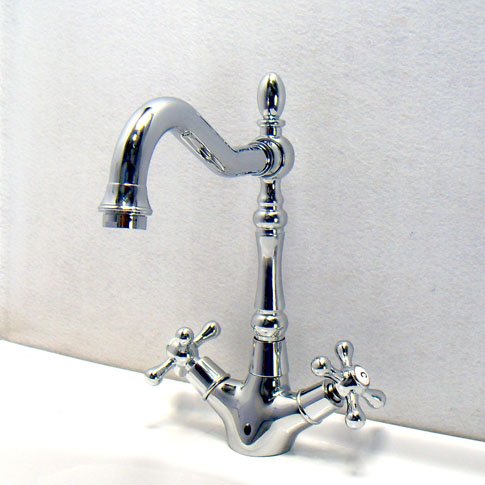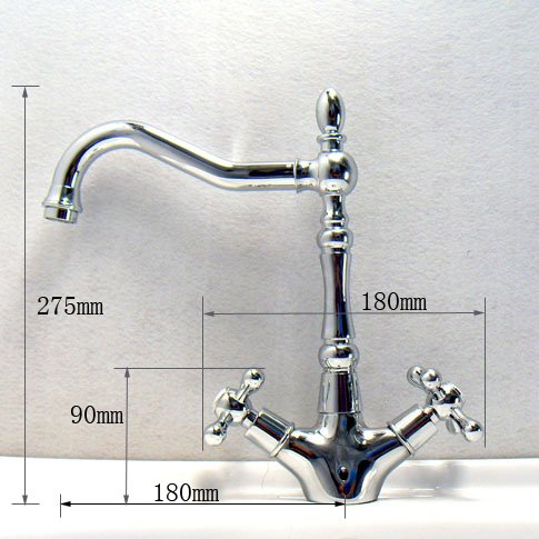 Designer Two Handles Brushed Silver Finish Cross Handle Control Mixer Valve Water Tap Kitchen Sink Faucet