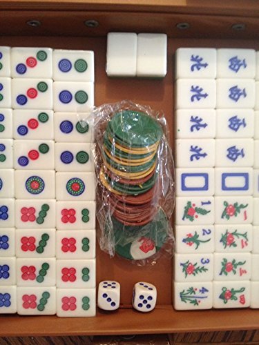 Mahjong is a game of skill, strategy, intelligence, calculation and luck originated in China.This mahjong set includes everything you need to get started. Mahjong tiles are made of white and green dual tone fiberglass, engraved with Chinese characters in bright colors. It comes with a elegant vinyl carrying case. Total 146 tiles including 2 blank Spares.A pair of dice.Tiles measure: W1.25" x H1.5" x D0.75"Feature