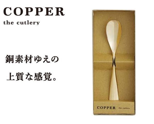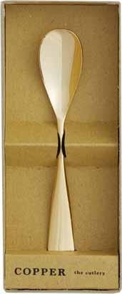 | 「COPPER the cutlery」は熱伝導率が高くぬくもりをダイレクトに伝える銅素材にこだわった正統派のアイスクリームスプーンとバターナイフのブランド。熱伝導率の高い銅素材のカトラリーは他金属のものに比べて手の温もりをダイレクトに伝え、固く凍った氷材さえやさしく溶けてゆく。銅素材のみにこだわった、シンプルで上質なCOPPER the cutleryは、悠久に続く優雅な時間を演出します。 |