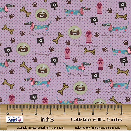Dogs - Wiener Dog - Fabric by the Yard - Selection of Color and Length - 100% Cotton (Pink, 1 Yard)