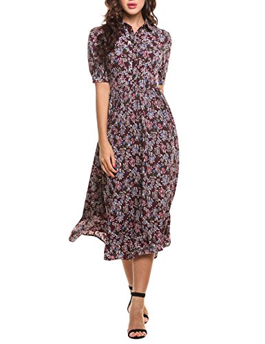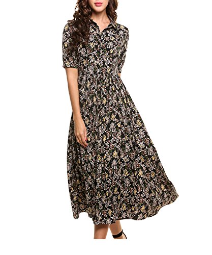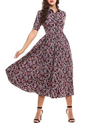Peter pan collar, short sleeve, front half button closure,waist pleated, swing hem, comfortable to wear. This dress with a beautiful belt is also very pretty