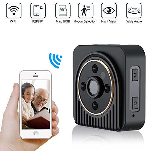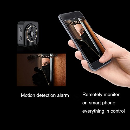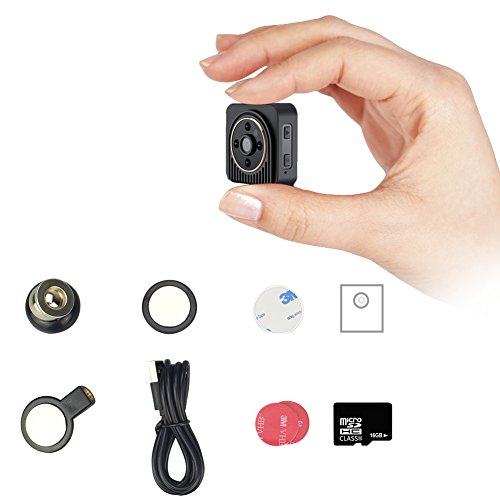 -. Feature : Mini Wifi IP Camera: Perfect wearable camera and security monitor for home security and surveillance, can be attached on any surface via magnetic mount kits when used at home/ office, even on collar of your shirt for video recording, or mount on bike as sport camera when travel. / Infrared Night Vision: With 4pcs built-in infrared night vision lights. No visible light during record, so it won't be found. Ideal works as baby monitor, nanny camera, pet monitor in your home. / Motion Detection: When motion detection is enabled, the device will push message and photos automatically if motion is detected. Perfect works as housekeeper cam, security cam for home families. Keep your home safely. / HD Video & 150ºWide Angle: 1280 x 720P video resolution. Super wide-angle capture. Support clear real-time video/ video recording. 16G Micro SD card is included. It will overwrite the old video automatically when it is full. / Smart WiFi Connection: Easy to operate, scan QR code on the manual to download APP "CAMSOY+", then search the wifi to connect, open the APP and finish setting up. You can view video wherever and whenever via your smart phone, iPad or laptop.