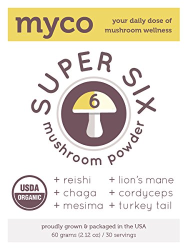 -. Title : Myco Super Six Organic Mushroom Powder - Full Body Blend (Reishi, Lion's Mane, Mesima, Turkey Tail, Cordyceps) Supports Mind, Energy & Immune System GROWN IN THE USA | 60 grams/30 servings