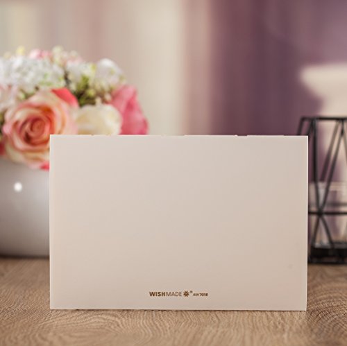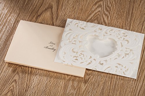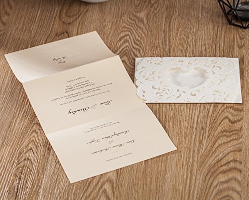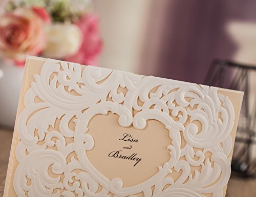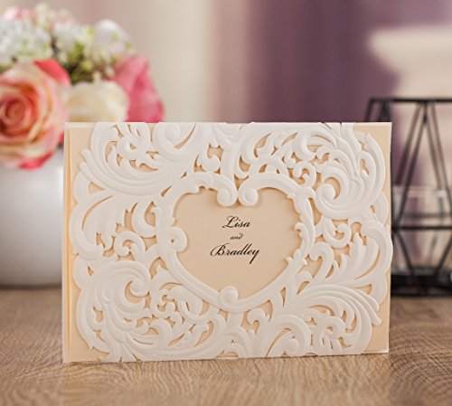 Wishmade 50x White Laser Cut Heart Design Wedding Invitations Cards Kit With Beige Color Tri-fold Printable Insert Pages For Wedding Party Birthday AW7018