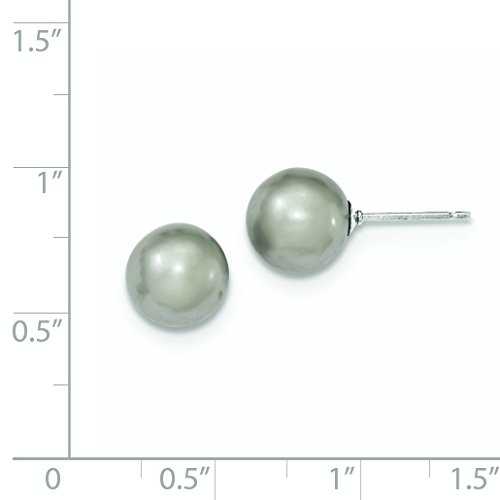 ICECARATS DESIGNER JEWELRY 925 STERLING SILVER 10MM GREY FRESHWATER CULTURED ROUND PEARL STUD BALL BUTTON STUD EARRINGS