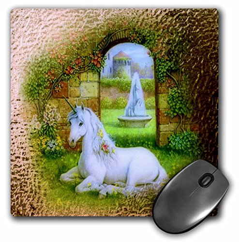 -. Title : 3dRose LLC 8 x 8 x 0.25 Inches Mouse Pad, Unicorn Gate Beautiful White Unicorn Flowers And A Golden Garden Gate (mp_52233_1)