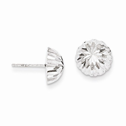 14k White Gold Polished & Diamond Cut Half Ball Post Earrings (9.5mm x 9.5mm)