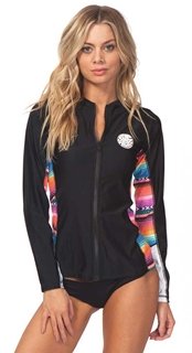 6 oz poly/spandex, 50+ UPF protection, performance fit, durable front zip