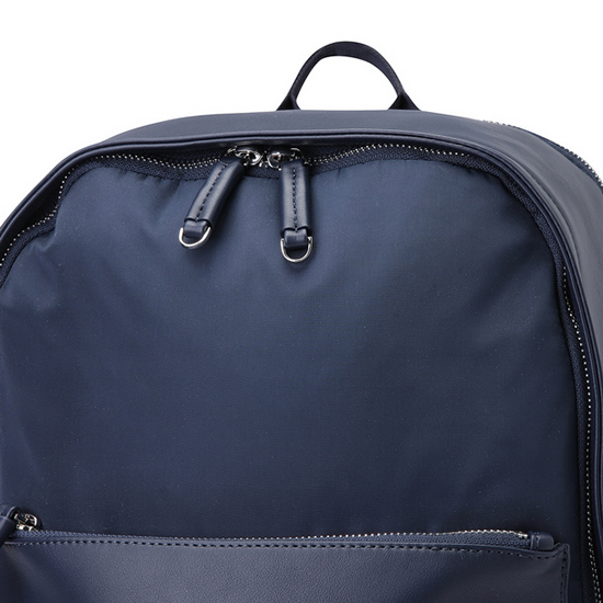 - 톤온톤 이소재 배색을 적용한 공용 백팩.