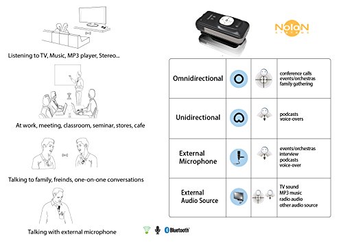 Nolan RemHearLinks is a wireless remote voice and audio links with embedded microphone and external audio input transmitter which capturing and delivering the remote source of voice or audio wirelessly to help hearing impairment to understand more speech and improve hearing over a distance. With unidirectional, omnidirectional and external microphone selections are allowing great choice to create superior sound at different environment, occasion and events such as noise restaurant, quiet music hall, conference and family gathering Microphone gain (sensitivity) and external audio source volume control to adjust own preferred volume level while family or others listens at theirs. The instant mute to stop unwanted voice sent to receiver, External audio source input with universal 3.5mm audio jack to connect tie-clip external microphone, audio output of TV or other audio source delivers clear and crisp sound and audio wirelessly. The high quality directional external tie-clip microphone can be attached to you or your friend's lapel or placed next to sound source including TV to catch the clear sound conveniently. Connect to audio output of your TV, MP3 or music player to listen and enjoy TV or music wirelessly at your own volume. With long range RF, it can transmits voice or audio of subject with clarity sound over distance upto 20M/66 feet to cover most of meeting room, kitchen, class room, office, house indoors and outdoors. Let you never miss a punch of line. Besides using with Bluetooth receiver, the RemHearLinks can works with other bluetooth remote hearing aids or streamer to transmit the speaker's voice directly to the hearing instrument over a distance. The lightweight, unobtrusive and easy-to-wear with clip is offering enhanced mobility to put in pocket or clip on collar. Package includes: Main unit, high quality tie-clip external microphone, 3.5mm audio cable, USB charging cable and QSGFeature