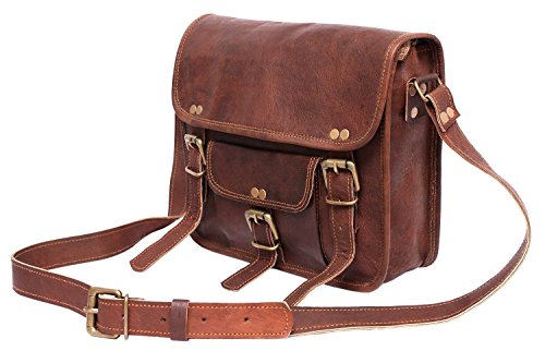 -. Title : Genuine Leather 13'' Crossbody Messenger Bag Handmade Briefcase Satchel Bag Brown (Style 5)