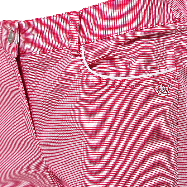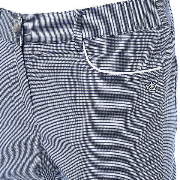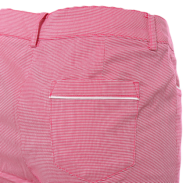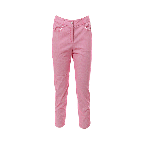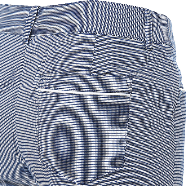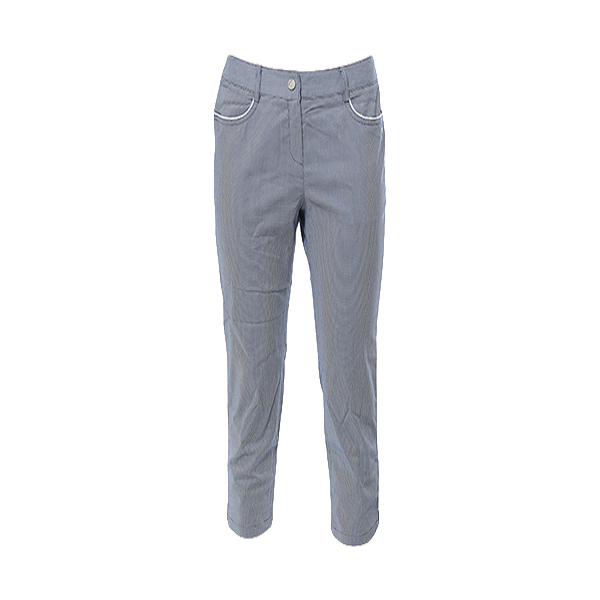 잔잔한 타원조직의 토톤 소재를 사용하여 밝고 시원해 보이는 외관을 연출함 주머니 입구에 화이트 칼라 삥줄로 포인트를 준 8 부 기장 SLAACKS