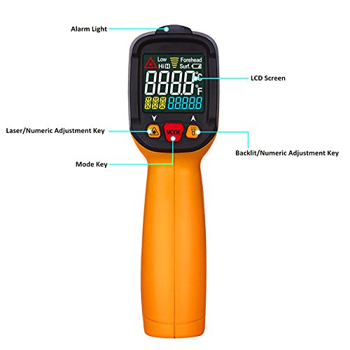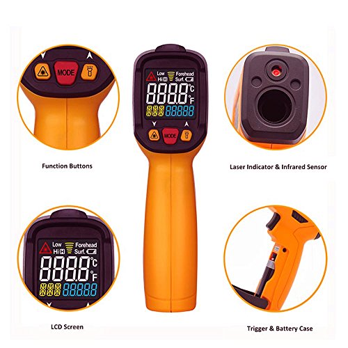 - ▶ Versatile Design -- Digital infrared thermometer makes it handy to use in cooking and barbequing, home repair, automotive cooling system, industrial and a host of other works. It's essential tools for electricity, coal and boilers.
