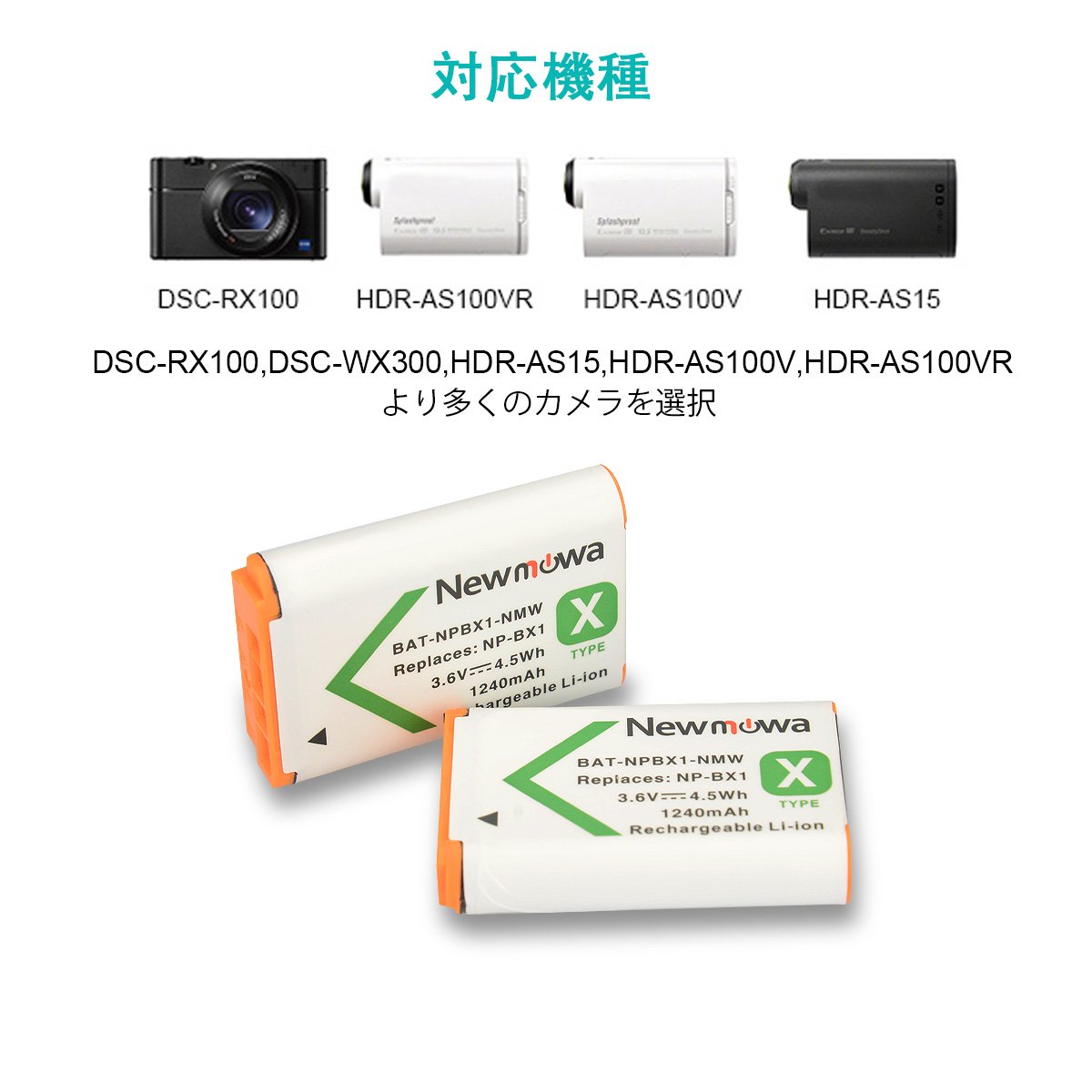 2 * 1240 mAh NP-BX 1 compatible battery