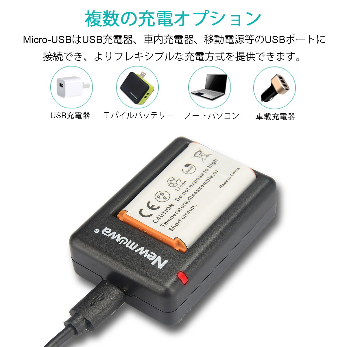 It is very good as a product, such as compactness, where you can charge two together with a case (By the way, SONY's battery could also be charged). However, please be careful because it is difficult to understand a bit when inserting the battery. Since the lamp did not come on, I tried variously whether the contact was bad or the cord was dead, but there was nothing, the direction of the batteries was opposite.