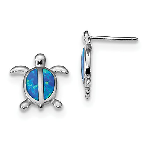 ICECARATS DESIGNER JEWELRY 925 STERLING SILVER BLUE CREATED OPAL TURTLE POST STUD EARRINGS
